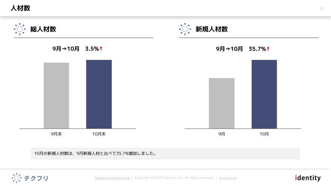 ・[人材数]10月の新規人材数は、9月新規人材と比べて35.7%増加しました。