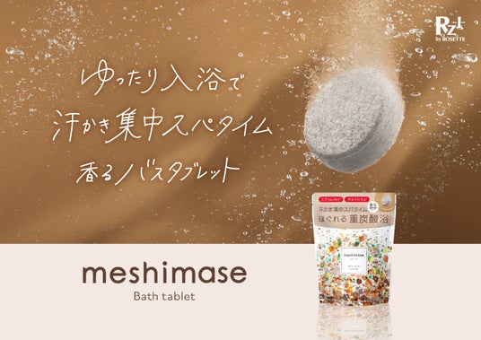 ロゼット株式会社(本社:東京都品川区、代表取締役社長:藤井 敬二)が展開する『Rz+ by ROSETTE』(アールゼットプラス バイ ロゼット)のボディケアブランド『meshimase(メシマセ)』から、重炭酸*2入浴料「meshimase バスタブレット スパ」を数量限定で発売いたします。
