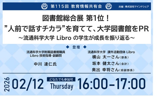 第115回教育情報共有会「図書館総合展 第1位!”人前で話すチカラ”を育てて、大学図書館をPR ~流通科学大学 Libro の学生が成長を振り返る~」