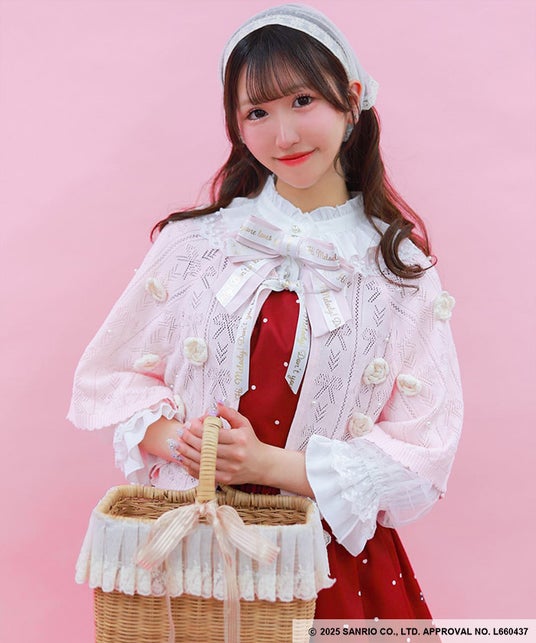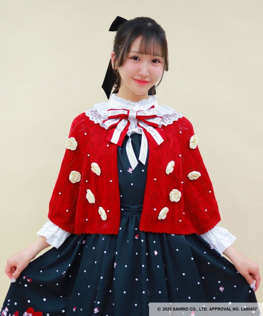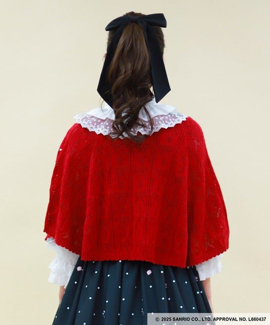 マイメロディの頭巾をイメージしたニットケープです。
