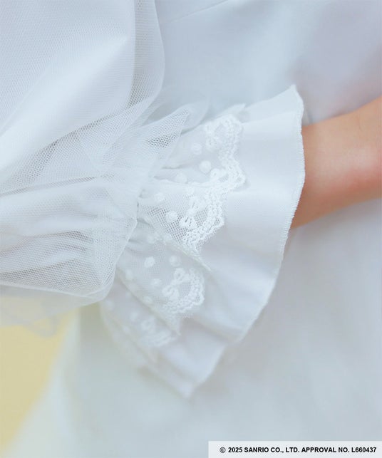 マイメロディをあしらったジャンスカと合わせて、襟のフリルを表に出したスタイリングがキュート♪