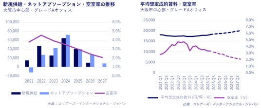 2026年以降も新規供給量の見通しは限定的であるため、需給がタイトな市境が続き、空室率のさらなる低下と賃料水準は継続的に上昇すると予想されます。特に2027年にはグレードAオフィスの供給予定がなく、需給環境が一段と厳しくなる可能性が考えられます。