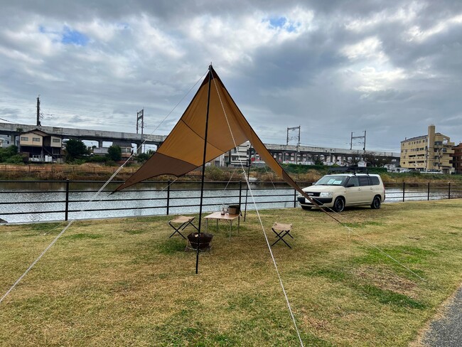 那珂川の河川敷に新設された空間にて、デイキャンプ体験ブースを担当。