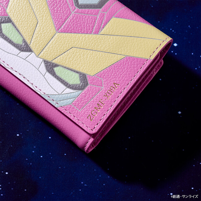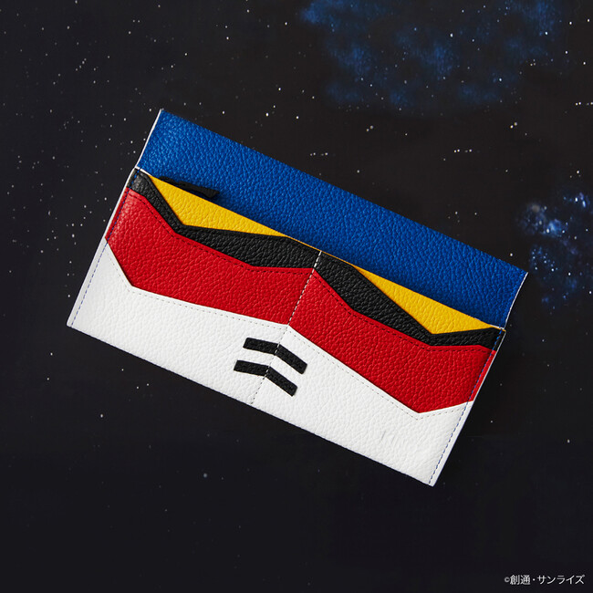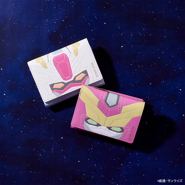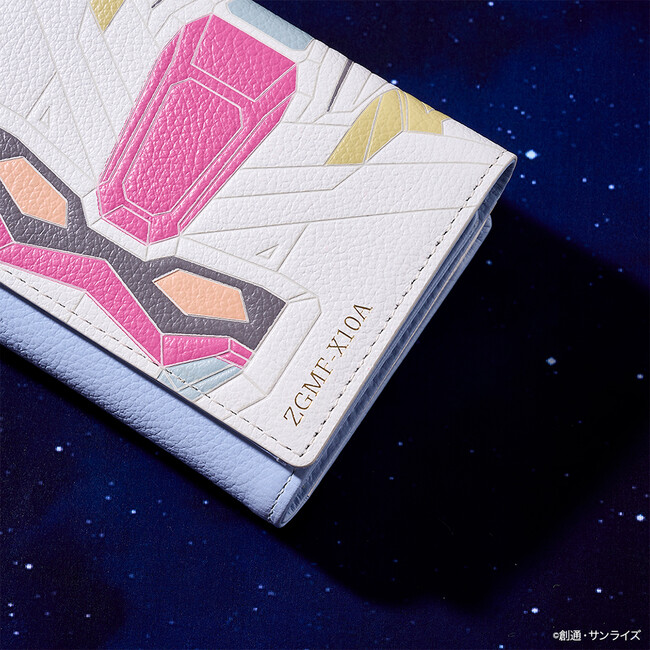 ジャスティスガンダムをフラップに落とし込んだ折財布やファスナーチャームも世界観あふれる仕上がりに。