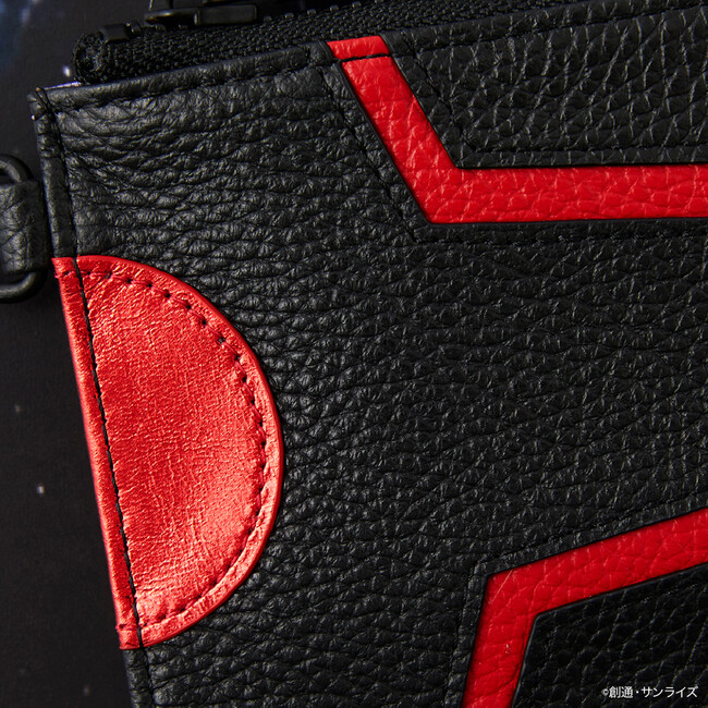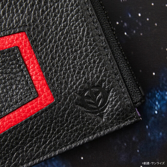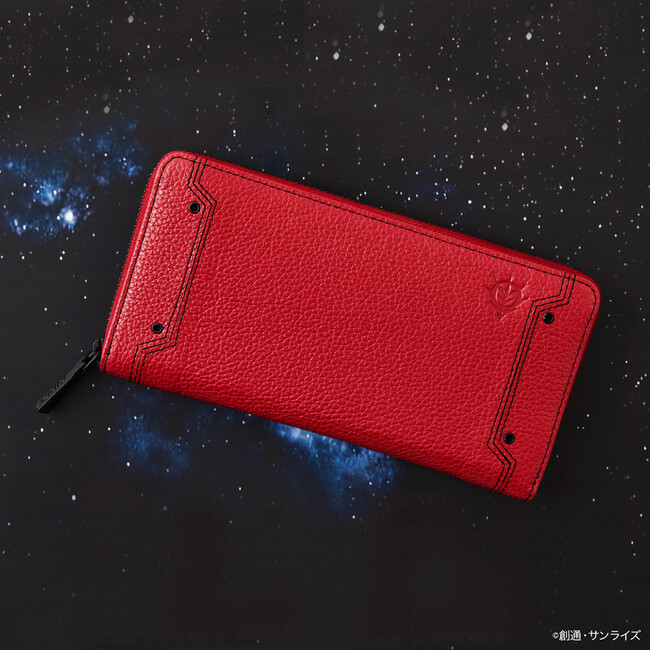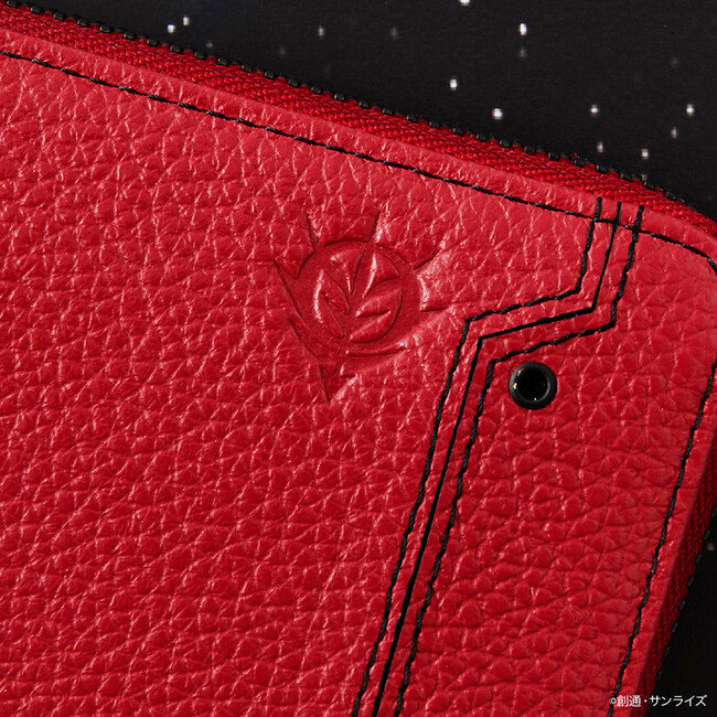 シャア・アズナブルが操縦するシャア専用ザクIIをイメージしたカラーにジオン公国軍のエンブレムを型押ししたラウンドジップ長財布。機体の模様などをブラックのステッチで再現し、さらに内装にはモノアイを光沢感のあるレッドの生地で表現。