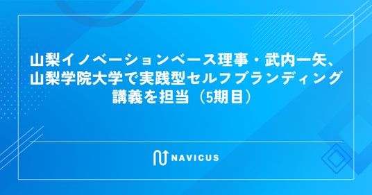 株式会社NAVICUSの代表取締役であり、一般社団法人山梨イノベーションベース(以下、YNIB)の理事を務める武内一矢は、山梨学院大学にて「セルフブランディング」をテーマとした講義を開講いたします。本講義は2022年より継続して実施しており、2026年度で5期目の開講となります。