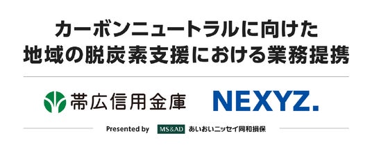 株式会社NEXYZ.Group(本社:東京都渋谷区 代表取締役社長 近藤 太香巳 証券コード:4346)の連結子会社である株式会社NEXYZ.(代表取締役 大前 成平)は、帯広信用金庫(本店:北海道帯広市 理事長 高橋 常夫)と業務提携契約を締結し、帯広信用金庫のお客様に対しLED照明をはじめとした省エネ設備の導入を通じたCO2排出削減・脱炭素への取組みの支援を始めたことをお知らせします。