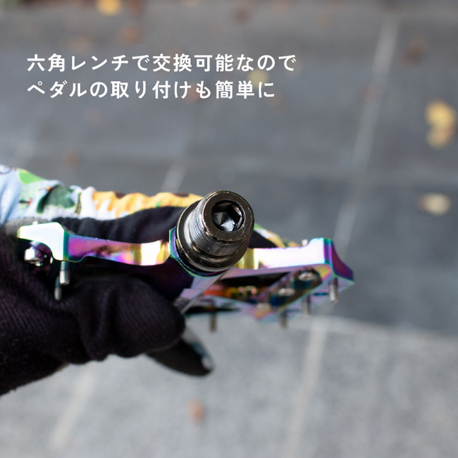 六角レンチで交換可能なのでペダルの取り付けも簡単に出来ます。