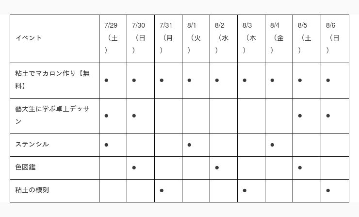 無料で参加できる粘土のワークショップから、藝大生から直接技術指導が受けられる本格的なデッサンまで、想像力や発想力などを養うアートワークショップが充実しています。