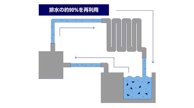 再生繊維で大きな問題となっている「水資源の消費量」。独自の技術で環境に優しく、殺菌・滅菌効果があるオゾン水とナノバブルで洗浄効果を高めた「水洗浄」を採用。一度使った洗浄水は沪過して再利用。同条件のペレットの中でも最も環境負荷が低く(※4)なっています。