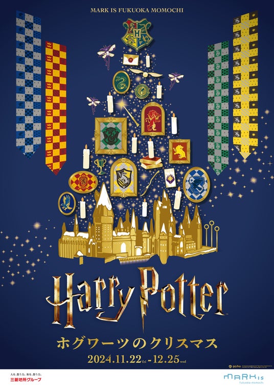 福岡で初開催となるクリスマス限定イベント「ハリー・ポッター ホグワーツのクリスマス」。2024年11月22日(金)より、MARK IS 福岡ももち館内各所に、ハリー・ポッターのフォトロケやデコレーションを施し、期間中はスタンプラリーやポップアップストア等のイベントも開催します。シンボルとなる全長約4メートルの巨大ツリーは、「ハリー・ポッター」に登場するホグワーツ魔法魔術学校と4つの寮(グリフィンドール、レイブンクロー、スリザリン、ハッフルパフ)にインスパイアされたもの。インパクト大のクリスマスツリーは、この期間の華やかな映えスポットとなり、福岡を彩ります!