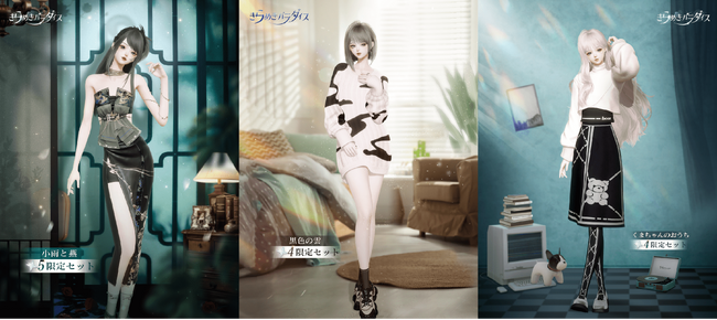 新章解放後、ファッションスタジオに星5セット『小雨と燕』、星4セット『くまちゃんのおうち』、『黒色の雲』が追加されます。素材を集めて、早速制作しましょう!