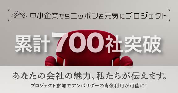 日本の経済を支える中小企業支援サービス事業を行う株式会社中小企業のチカラ(本社:東京都渋谷区、代表取締役社長:山下 佳介、以下「中小企業のチカラ」)(https://smes-chikara.co.jp/)が運営する『中小企業からニッポンを元気にプロジェクト』( https://nippon-smes-project.com/ )への参画企業が累計700社を突破いたしました。