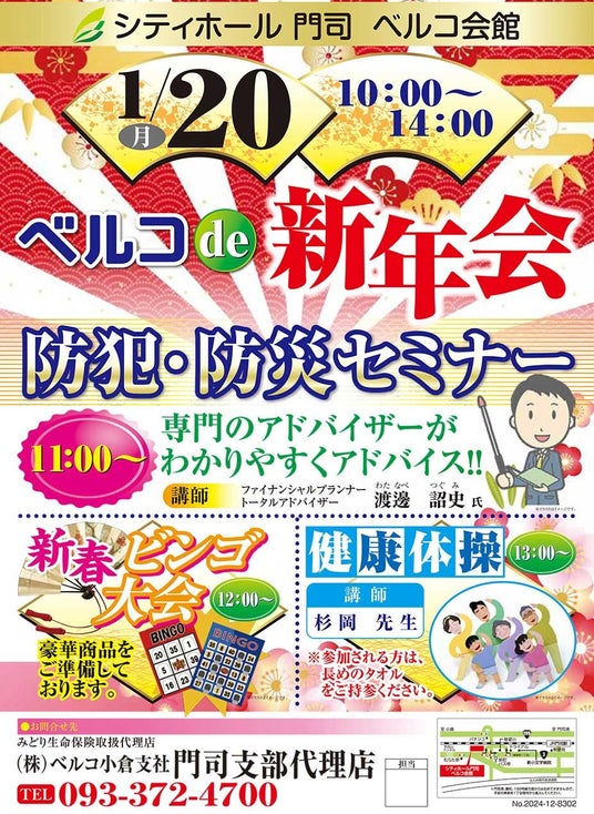 新しい年の始まりを記念して、シティホール門司 ベルコ会館では、地域の皆さまが安心して暮らせる未来を考える場として「ベルコde新年会 防犯・防災セミナー」を開催いたします。本イベントは、SDGs(持続可能な開発目標)の理念に基づき、地域の安全性向上や健康促進を目指した取り組みです。