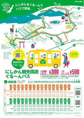 〇岩室温泉・日本海・山・歴史・酒・食、にいがたらしさが全部ある「にしかん」の魅力的な観光スポットと彌彦神社を結ぶ「にしかん観光周遊ぐる~んバス」は4月29日(土・祝)から10月29日(日)の土日祝日運行。