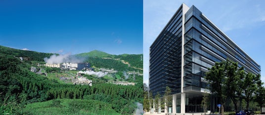 地熱発電所(九電みらいエナジー八丁原発電所)と供給先ビル(中野セントラルパークイースト)