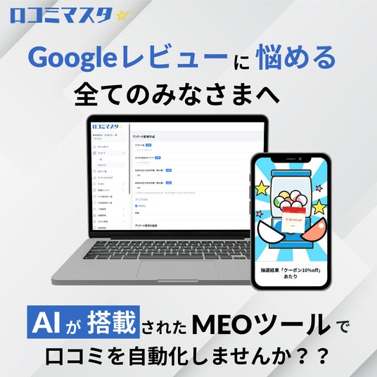 口コミマスターは、口コミの獲得→返信→分析→改善までを一連の流れとして回しやすくし、現場の運用負荷を抑えながらMEO改善を支援するツールです。