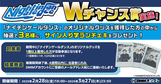 DMMオンクレにて「ナイチンゲールダンス」のオリジナルグッズを獲得した方の中から抽選で3名様に、サイン入り学ランチェキをプレゼントいたします。