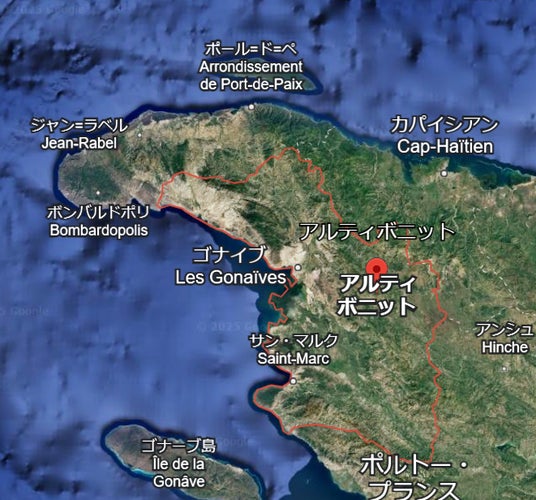 ○ハイチ中部アルティボニット県(参照:Google Earth)