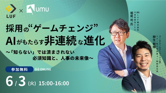LUF株式会社とユームテクノロジージャパン株式会社は、2025年6月3日(火)に無料オンラインセミナー「採用の"ゲームチェンジ":AIがもたらす非連続な進化~「知らない」では済まされない必須知識と、人事の未来像~」を共同開催いたします。