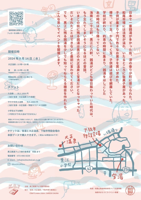 tokyosaunaは2024年8月14日(水)、和歌山県海南市黒江で開催される「KUROE SENTO FESTIVAL」に出展いたします。tokyosaunaサウナグッズの展示・販売・レンタルを行います。
