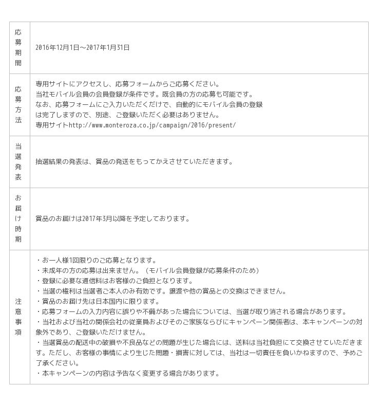 「福が来る大抽選会」http://www.monteroza.co.jp/campaign/2016/present/