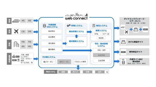 - 2026年4月(今回):全素材の統合完了。次世代販売モデルへの刷新を達成 「webコネクト」の拡張性を活かし、先行してリリースした航空DPに加え、新たにJRの列車と宿泊素材をオンライン上で自由に組み合わせて販売できるJRDP、および着地観光素材・ツアー商品の検索・予約・販売機能を一挙に拡充しました。これにより、宿泊、交通、現地体験のすべての素材をwebコネクト上で自在に組み合わせ、多様な旅行ニーズに即座に応える体制が整いました。