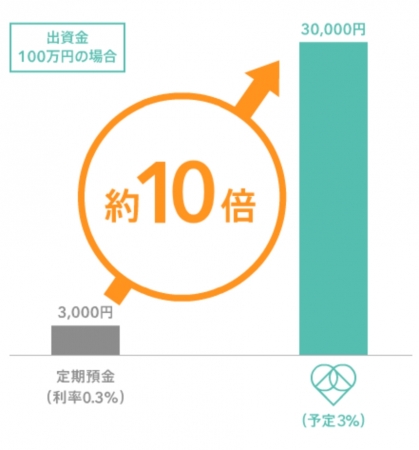 本商品は上場株式や上場REITのように、取引所にて日々価格が変動する中で取引されるものではないため、投資額の安定性は上場株式や上場REITと比較すると一般的に高くなります。収益性については、元本に対する予定分配率を年3%(税引前)としております。