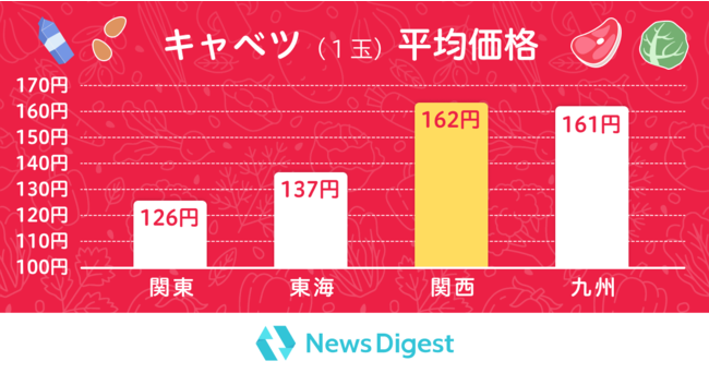 特に、キャベツは東西で一玉あたり30円以上の差があり、西日本の消費者にとって負担が大きいことがうかがえます。