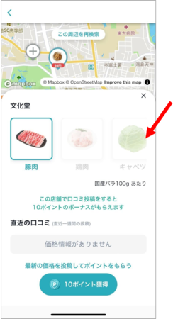 集まったモノの値段の情報は、アプリ内「お得マップ」に掲載されます。このため、ユーザーはポイントを獲得するだけでなく、お買い物前に、よりお得なお店を探すことができます。