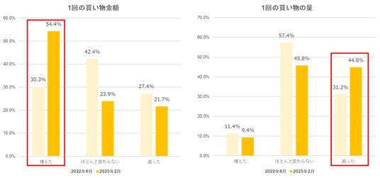 買い物の変化については、前回調査時の2022年7月と今回の2025年2月と比較を行いました。