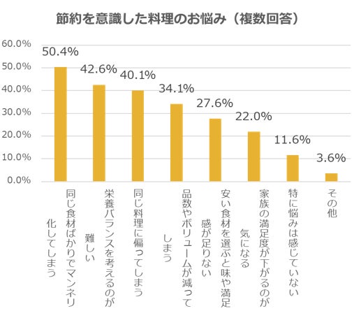 節約を意識した料理の悩みは「食材のマンネリ化」と「栄養バランスの難しさ」