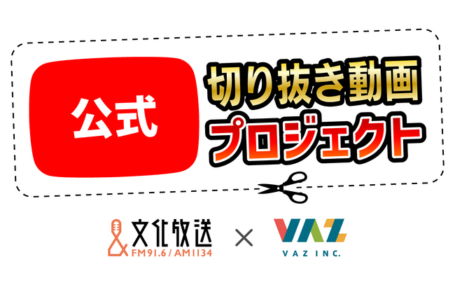 株式会社文化放送と、YouTube事業を手掛ける株式会社VAZは、文化放送のラジオ番組音源を使った公式切り抜き動画プロジェクトを4月18日よりスタートさせました。