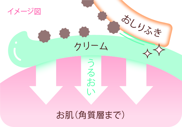 事前におしりや背中、太ももなどに塗ることで、ふきとりなどの刺激からお肌をまもり、赤みや肌荒れなどの皮膚トラブルを予防します。