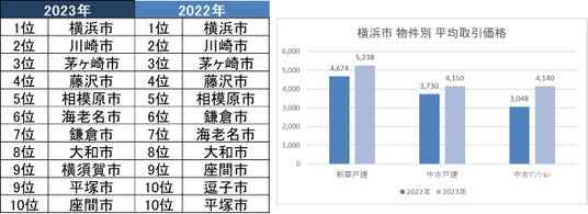 左:神奈川県内市別ランキング 右:横浜市物件別平均取引価格