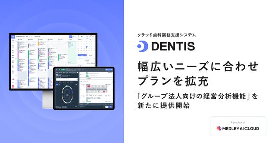 株式会社メドレー(本社:東京都港区、代表取締役社長:瀧口 浩平、以下メドレー)は、次世代医療プラットフォーム「MEDLEY AI CLOUD」のプロダクトとして提供するクラウド歯科業務支援システム「DENTIS(デンティス)」において、2つの新プランの提供を開始します。さらに、複数医院で横断的に経営指標の分析が可能な経営分析機能を新たに開発し、今後、グループ法人向けプランで提供していきます。