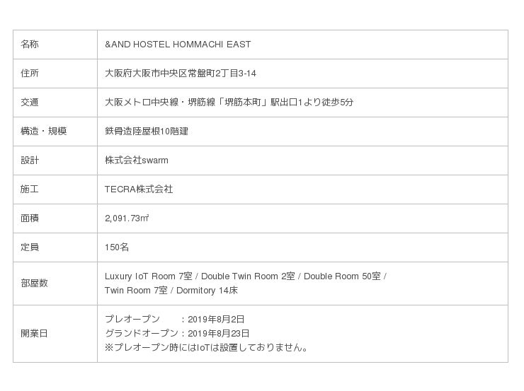 and factory株式会社(本社:東京都目黒区、代表取締役社長:小原崇幹、証券コード:7035、以下and factory)は、IoT体験型宿泊施設であるスマートホステル(R)※1「&AND HOSTEL」の9号店「&AND HOSTEL HOMMACHI EAST」を8月2日に開業いたしましたのでお知らせします。