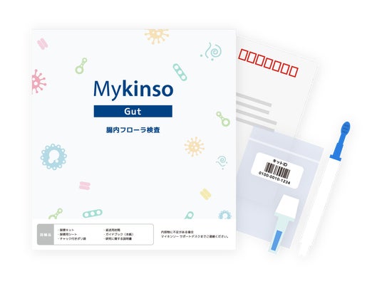 自宅で誰でも簡単にできる腸内フローラ(腸内細菌叢)検査サービス。腸内フローラの良し悪しを5段階で評価する「腸内フローラ総合判定」の搭載に加え、ビフィズス菌や酪酸産生菌、エクオール産生菌などの有用菌、肥満や大腸がんのリスクに関係がある要注意菌など10項目が確認できます。加えて、菌の項目に合わせて腸内環境を改善するためのアドバイスもお伝えします。全国 1,500 施設を超える医療機関で受けられる「マイキンソー プロ(Mykinso Pro)」や乳幼児に特化した検査サービス「マイキンソー キッズ(Mykinso キッズ)」も展開しています。
