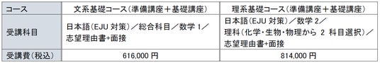 前半を「準備」、後半を「基礎」と位置づけ、EJU試験で高得点を目指すための基礎学力を養成するコースです。