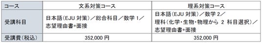 ※各コースとも単科での受講、日本語以外の他科目のみの受講も可能です