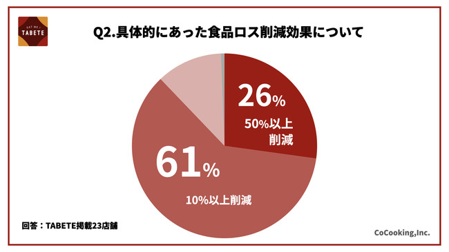 2)26%以上が「導入後50%以上の食品ロス削減に成功」と回答。