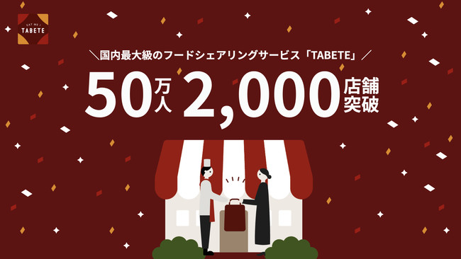 株式会社コークッキング(以下コークッキング)の展開する国内最大級の食品ロス削減のためのフードシェアリングサービス「TABETE(タベテ)」が、累計登録ユーザー数が50万人、累計登録店舗数が2,000店舗を突破したことをお知らせいたします。