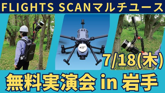 株式会社FLIGHTSは、7月18日(木)に岩手県で共催する無料実演会において、CSPI-EXPO2024で発表したドローン搭載型LiDAR「FLIGHTS SCAN」のマルチユース対応の一部である「バックパック型」「ハンドヘルド型(ハンディ、手持ち)」での利用を公開いたします。本実演会は、岩手県を拠点に測量機器・コンピューターなどの幅広いニーズに応える株式会社岩手測器社(本社:岩手県盛岡市、代表取締役社長:岡沼 浩一)との共催です。