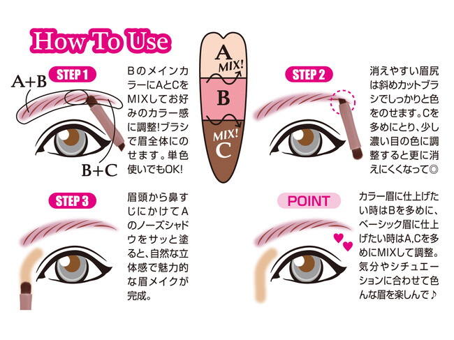 カラー眉初心者でもOK。3色をブレンドすることで、自分好みのカラーに調整できます。