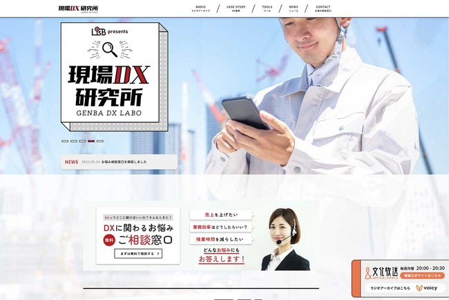 ・コンテンツ :DXお悩み相談窓口、DX事例、ツール紹介、ラジオ番組「現場DX研究所」、ニュース など