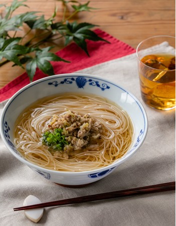 台湾現地では「担仔(タンツー)ビーフン」と呼ばれ、台湾南部の町・台南発祥の有名台湾屋台料理です。鶏やエビからとった出汁と五香粉(ウーシャンフェン)の風味が合わさった、やさしく飽きがこない味わいのスープが特徴のビーフン料理。