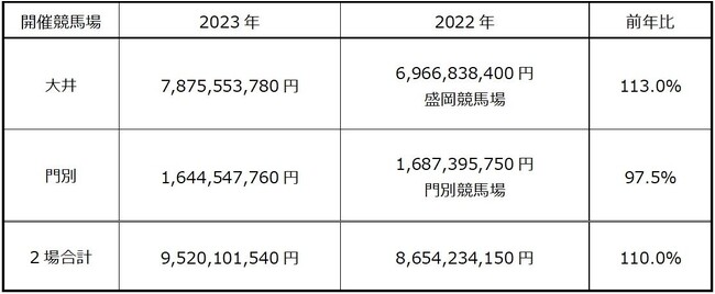 ※JRA京都競馬場での開催(2018年)を除く2場合計の地方競馬レコードは、2020年大井競馬場と門別競馬場における10,088,541,950円