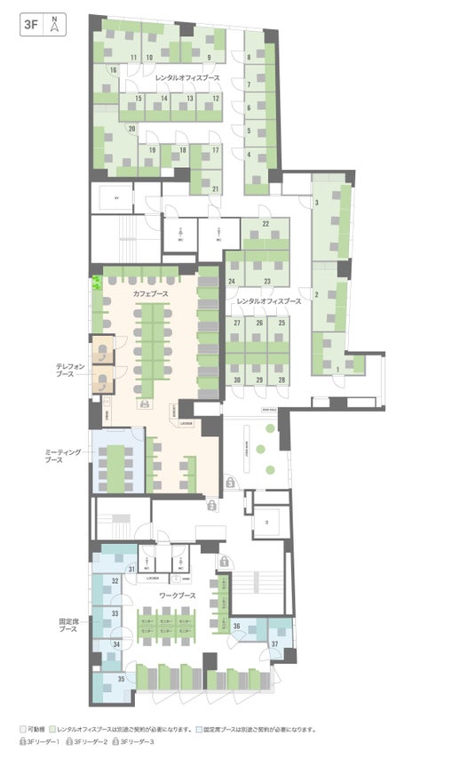 席数:【コワーキングスペース】48席(うち固定席7席)【レンタルオフィス】30戸