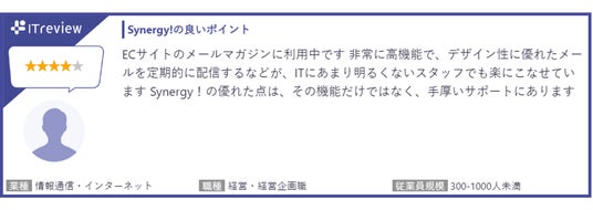 ITreviewに投稿のあったSynergy!ご利用のお客様からのレビューの一部を紹介します。