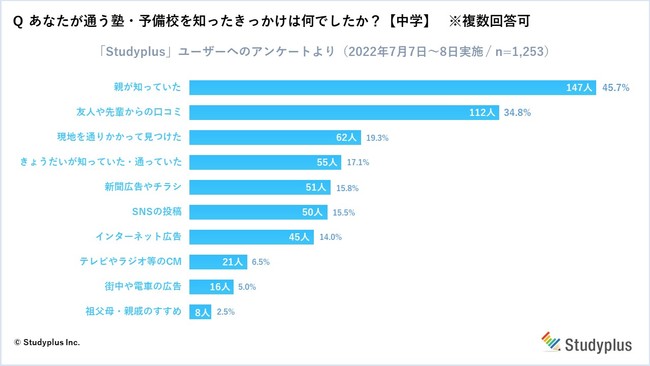 調査対象 : 全国の「Studyplus」ユーザー(現在、通塾中の中高生)
